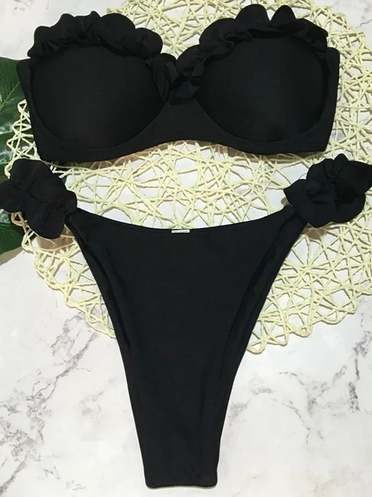 Add a touch of playful charm to your beach look with this Ruffle Bra Flirty Frilled Two-Piece Bikini Set. Featuring a soft, ruffled bikini top with flirty frill details and adjustable straps, this set offers a feminine and flattering silhouette. The matching bikini bottoms mirror the ruffled accents, creating a cohesive, cute, and confidence-boosting outfit. Perfect for beach days, pool parties, or summer vacations, this two-piece set blends sweet style with a sexy edge. Lightweight, stretchy, and comfortable โ itโs your new go-to for turning heads in the sun.